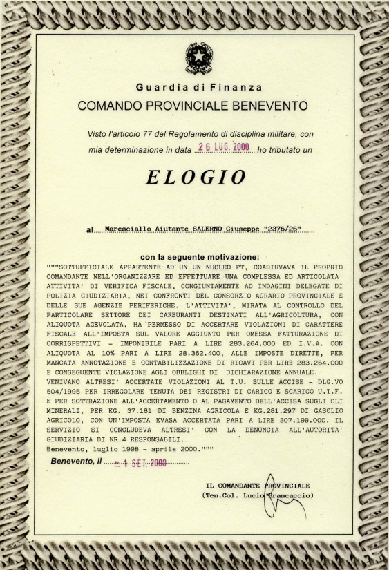 Elogio 26 Luglio 2000